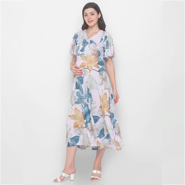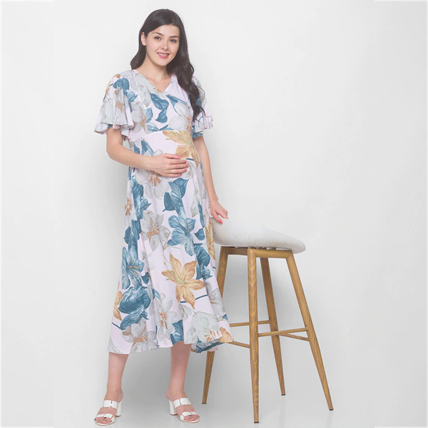 Pink Floral Maternity Midi Dress